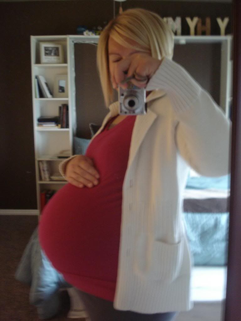 Size of baby:  On Mondays appointment he was measuring over 8 lbs and she (Yes I had to see a different OB because mine was out of town) said according to his leg measurement he is going to be a long kid....  My only consolation is that sometimes they can be off on the weight by about 1 lb so maybe he really isn't over 8 lbs or maybe he is closer to being over 9 lbs - yikes!