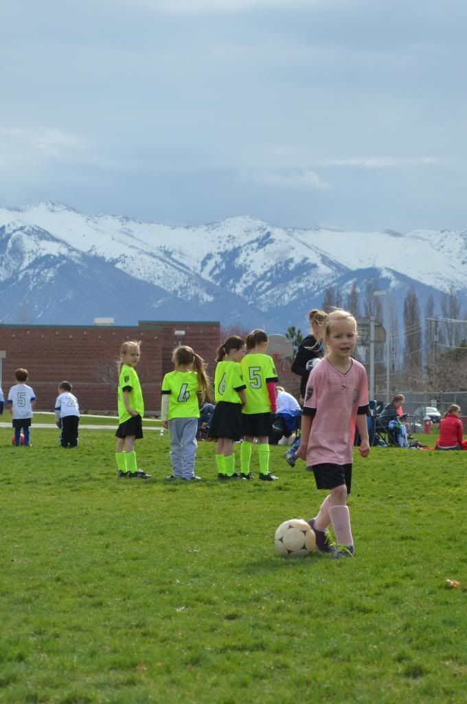 Spring soccer has started up for Rachel. We were a little worried a few weeks before her first game because this field was still totally covered with very deep snow. With our quick warm up though it melted quite fast and as you can see left the grass a brilliant green.