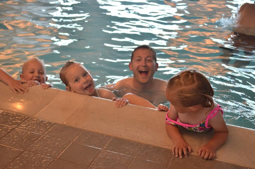 The hotel was awesome! Andrew loved being out of his car seat. He was all squeals, giggles and smiles when we were there. Hannah loved snuggling under the down comforter and swimming in the pool. She loved splashing in the water, kicking her feet while hanging off the side of the pool, jumping to Marc's arms and floating on her back. She kept saying "YAY! The big pool! Lets go swimming!!"